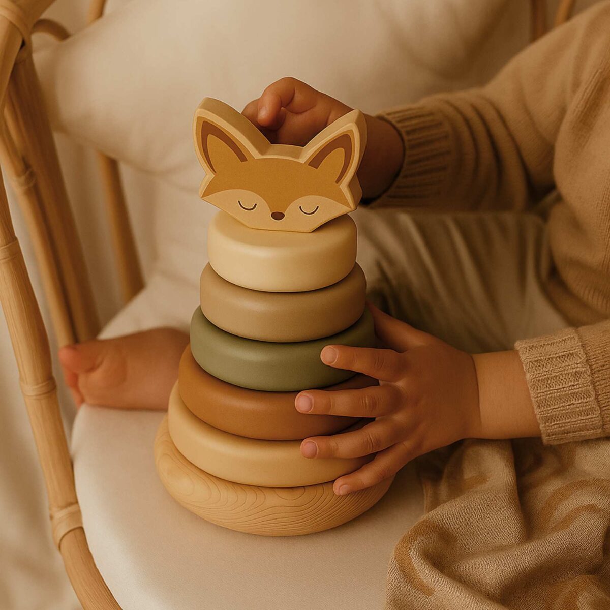 Stackaboo est bien plus qu’une simple tour à empiler. Avec ses anneaux colorés et son renard en bois au sommet, il stimule la coordination œil-main, l’apprentissage des tailles et le développement de la concentration chez les tout-petits. À chaque anneau empilé, bébé affine ses gestes et renforce sa motricité fine.